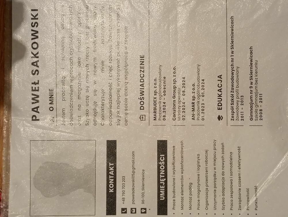 Szukam pracy w Skierniewicach jako ochrona w sklepie jak najszybciej może być nawet monitoring pilnowanie obiektu nawet grupa interwencyjna robiłem w ochronie rok i wiem o co chodzi mi je CV jest w dzieciachPaweł